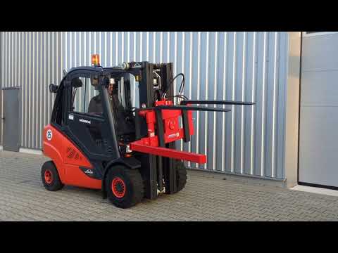 Kistendrehgerät für Gabelstapler EURO-Drehgerät ED 180-508, Gabelträgerhöhe 508 mm, (FEM III), Gabelträgerbreite 1000 mm. Schwere, stabile Ausführung mit schwerem Drehkranz, drehbar um 180°, linksdrehend, mit einsteckbarer seitlicher Drittgabel, Schläuchen und Kupplungen. Gewicht ca. 295 kg.